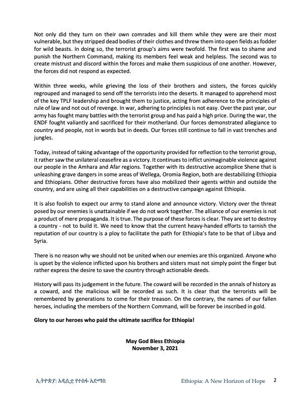 The United Nations should send a high-level envoy to Mekelle to meet with the Tigrayan leadership and listen to their demands. The world needs to do business with the TPLF/TDF. Not just Tigray but Ethiopia depends on them.