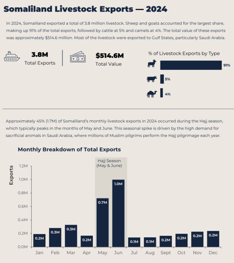 • The increase in Somalia’s livestock exports can be attributed to Sudan facing conflict and Australia reducing exports, allowing Somalia to take advantage of the situation.