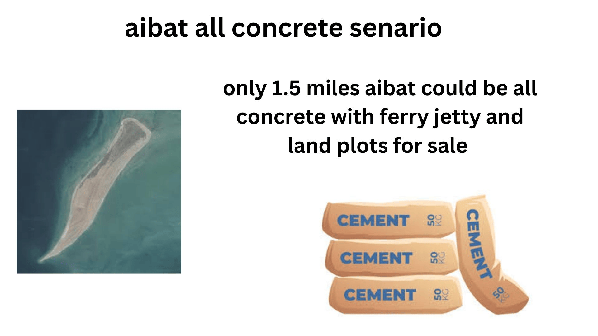 aibat is a island off somaliland , and could be a potential gold mine , it can be developed as a torusit destination with ferrys from berbera and land plots for sale , and could have hotels shops and mall only 1.5 miles and 12 km away from somaliland it could generate good revenue as a torusit region and surprise somaliland with hotels and shops it could make around 1 billion dollars in sale from tourists with many hotels traffic lights , ferrys per hour and apartments for rent , somalilander could go on holiday to aibat that work in the city , the island should be all concrete and im sure somaliland could get a contract for all concrete , power station , traffic lights and road and land plots for apartments , when all is done somaliland get high money from land plots as much as 200 million dollars to build apartments and hotels and shopping malls with high land prices for sale with only small development con tract needed , aibat could make 1 billion dollars in the future if it gets a all concrete development , land plots on its own could be very high , aibat would have thier own, somaliland could get a full contract for the island with own power of around 100 megawatts and build hotels over 10 hotels and even build a skyscraper , it would a new economic area , it can in the futre even get designation as a region in somaliland such as awdal, and sanaag , aibat as a region is possible when built with all concrete with a contract , it can make over 1 billion with tourism, aibat and saadadin islands should be a region in somaliland with own budget from the goverment , aibat should get govermental funding as region the same as awdal and sahil