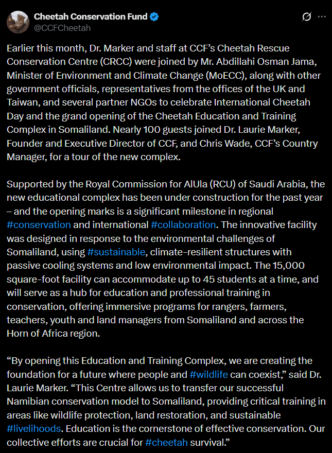 Proud to hand over support from Taiwan Government for the Cheetah Rescue and Conservation Center (CRCC) Phase Two Project. With this seed funding, we wish to support the construction of the 200-hectare Cheetah Rewilding Enclosure, and to help attract even more support from international donors. Taiwan is proud to support the conservation of the wildlife and biodiversity. “Together we can achieve more”.
