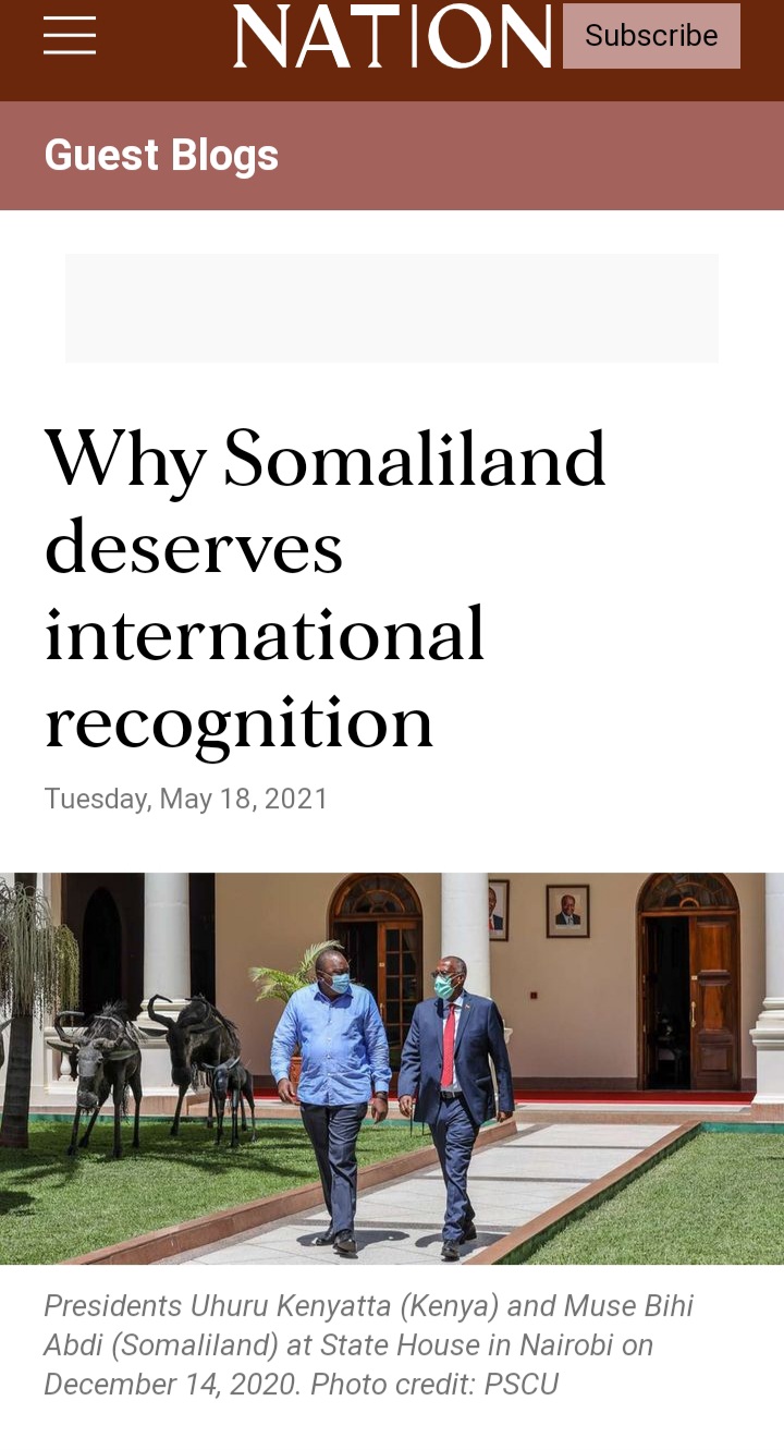 Yet in the eyes of the world Somaliland remains part of Somalia. For longer than most of its people have been alive, its pleas for recognition as an independent state have been ignored. The world defers on this to the African Union, the continental arbiter. It, in turn, argues that Somaliland can win independence only with the consent of Somalia, which says no.