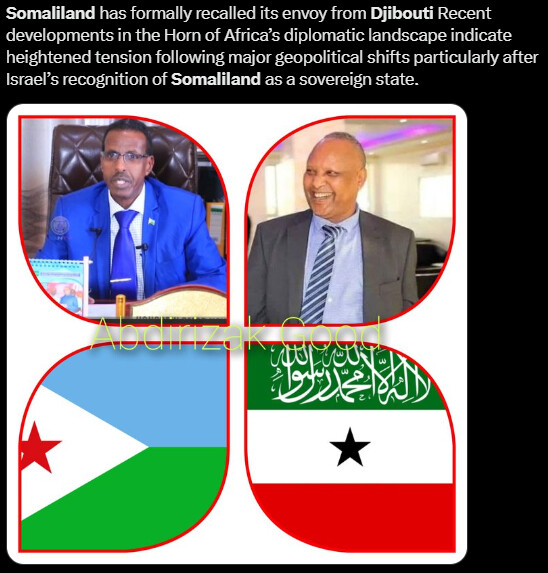 Diplomatic sources and regional analysts said the move follows Israel’s recognition of Somaliland, a step Djibouti is among the countries that have publicly opposed, contributing to heightened diplomatic tensions in the Horn of Africa.